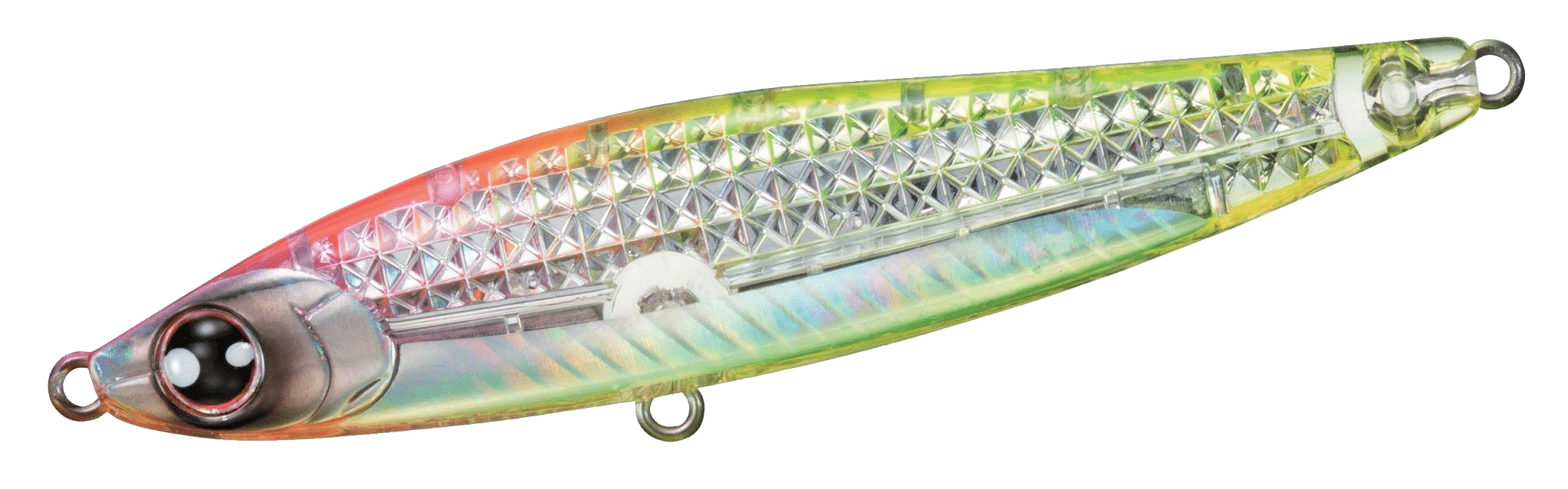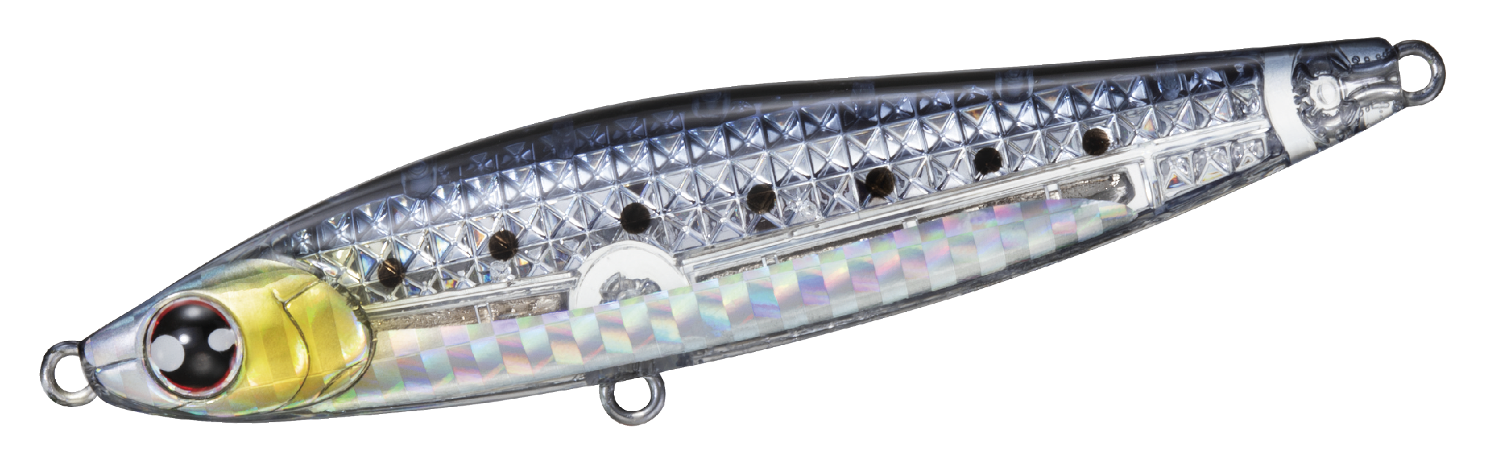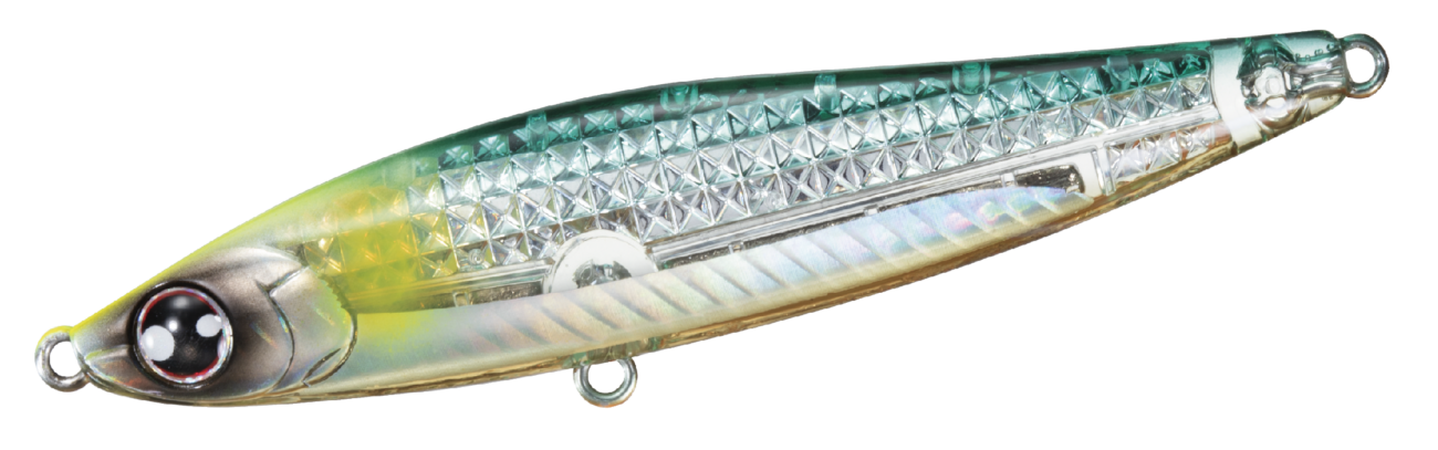 Il Switch Hitter della serie Morethan è una pencil bait compatta e progettata per lanci lunghi, ora ulteriormente migliorata con la tecnologia Laser Impact che emette riflessi multi-direzionali, simulando il luccichio del pesce foraggio come acciughe e sardine. Questa caratteristica unica attira predatori da grandi distanze, rendendolo ideale per una vasta gamma di condizioni di pesca.